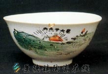 名称:白釉彩绘建设山区瓷碗 规格:D12.5cm White Glazed Porcelain Bowl with Decoration of Constructing Mountainous Areas |