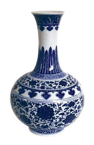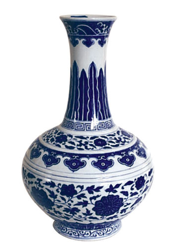 | 反腐倡廉是当今世界各国各地区政府机构致力推行的主题目标之一,不同国家不同地区可能会采取不同的方式、方法,以督促或鞭策政府官员在工作中清正廉明,秉公办事。其实,对于反腐倡廉的“急迫”的心情,当今世界各国各地区是这样,而中国古代也莫不是如此。早在中国清代雍正时期(1723—1735年),为了表达政府对官员们寄予的厚望,鼓励政府官员在日常工作中清正廉明,反对贪污腐化等腐败行为,政府部门精心设计,专门创烧了一种瓷瓶,用以赏赐官吏,这就是赏瓶。赏瓶的诞生可谓凝集着清政府的良“苦”用“心”,这种赏瓶的基本形制相同,为撇口,细长颈,圆腹,圈足。纹饰也很有“讲究”,为固定的模式,肩部装饰凸弦纹,颈部装饰青花蕉叶纹,腹部装饰缠枝莲纹。采用这样固定模式的纹饰,其意喻深刻,不言而喻,“青”代表“清”,“莲”代表“廉”,“青”“莲”合在一起,也就是希望大大小小的官吏们为政要“清正”,做人要“廉洁”,不负政府和民众的托附。赏瓶创烧以后,很快就成为了清代瓷器生产中的一个传统器型。其中,尤以乾隆时期(1736-1795年)赏瓶的生产与使用最为盛行。 乾隆青花缠枝莲赏瓶(见图1),通高39厘米。基本造型为撇口,细长颈,阔腹,圈足,器底有“大清乾隆年制”六字二行青花款。全器纹饰主要分为:近口部为海水纹,颈部为蕉叶纹,肩部为回纹、缠枝莲纹和如意云纹,腹部为缠枝莲纹,足部为卷草纹。造型规整,制作精细。中国古代瓷器制造业发展到乾隆时期,被认为是整部中国古代瓷器史中由盛而衰的转折点。这时期的瓷器制造非常有特点,正所谓“乾隆承祖父之余荫,天下安定,物阜财丰,恣意享乐。所有典章文物,无不竭力表扬。对于瓷业,尤极讲求。凡过去所有之名瓷,靡不模仿其特异者……故中国任何瓷器,均可于乾隆瓷中睹其样本。”(赵汝珍《古玩指南》)乾隆青花瓷器的釉色比前朝略显清亮,瓷器的品种也比前代更为丰富多样,赏瓶作为当时政府部门一种有象征意义的赏赐物品,在这时期非常兴盛,制造多,赏赐多,较为常见。此件乾隆青花缠枝莲赏瓶现珍藏于云南省博物馆。 道光青花缠枝莲赏瓶(见图2),通高39厘米。基本造型为撇口,细长颈,阔腹,圈足,器底有“大清道光年制”六字二行青花款。全器纹饰主要分为:近口部为海水纹,颈部为蕉叶纹,肩部为回纹、缠枝莲纹和如意云纹,腹部为缠枝莲纹,足部为卷草纹。道光时期(1821-1850年),中国制瓷业已经在走下坡路,“传世的瓷器数量比较多,但在质量上就无法和康熙、雍正、乾隆三朝相比拟了”。(冯先铭《中国陶瓷》)不过尽管如此,道光青花瓷品中亦有一些比较精细的作品。上述此件道光青花缠枝莲赏瓶,创作规整,纹饰精美,釉色淡雅,给人清新之感,现珍藏于云南省博物馆。 光绪青花缠枝莲赏瓶(见图3),通高39厘米。基本造型为撇口,细长颈,斜肩,圆腹,腹下有圈足,器底有“大清光绪年制”六字二行青花楷书款(见图4)。全器纹饰主要分为:近口部为海水纹,颈部为蕉叶纹,肩部纹饰依次为回纹、缠枝莲纹、如意云头,腹部饰缠枝莲纹,圈足为卷草纹,等等。光绪时期(1875-1908年),数次大批烧造赏赐所用的官瓷,声势极盛,正所谓“在嘉庆以后官窑衰落的形势下,大有中兴之势的起色”。(冯先铭《中国陶瓷》)与道光赏瓶相比,光绪赏瓶的腹部略收缩,更圆,似球形,腹部缠枝莲纹饰装饰面积缩小,釉色更显浓重。此件光绪缠枝莲赏瓶现珍藏于云南省博物馆。 光绪青花釉里红花卉纹赏瓶(见图5),通高38厘米,口径11厘米,足径14厘米。该赏瓶的基本造型为撇口,细长颈,斜肩,圆腹,腹下有圈足,器底无款识。全器纹饰主要分为:近口部为云纹,仅装饰了单薄的一层,颈部的上半部分留白,下半部分采用青花釉里红装饰蕉叶纹,肩部纹饰依次为卷草纹、回纹、如意云头,腹部亦采用青花釉里红装饰花卉纹,留白处较以上介绍的其他赏瓶为多,圈足为卷草纹,等等。釉里红是中国古代瓷器釉下装饰品种之一,它是以铜为着色剂的色料在胎体上描绘纹样,然后罩上透明釉入窑高温烧成,常与青花结合在一起进行装饰,称之为“青花釉里红”,“既有青花幽靓雅致,沉静安定的特色,又增添了釉里红的浑厚壮丽,丰富了色彩效果,形成了高雅而又朴实的艺术风格。”(潘兆鸿《陶瓷300问》)青花釉里红装饰始于元代,由于烧成难度高,因此被视为古瓷珍品。就此件光绪青花釉里红花卉纹赏瓶而言,造型落落大方,构图疏密相间,给人以既鲜丽而又淡雅之感,现珍藏于云南省博物馆。 赏瓶自雍正时期创烧以后,成为了清代一种固定的器型。当然,釉彩不仅有青花,也有粉彩、五彩、单色釉等等,装饰图案也不仅仅局限于缠枝莲纹。 乾隆蓝釉描金龙纹赏瓶(见图6),通高38厘米,口径10厘米,现珍藏于云南省博物馆。该赏瓶的基本造型为撇口,细长颈,斜肩,圆腹,腹下有圈足,器底落款为“大清乾隆年制”三行楷体抹红款,但字体书写显得较为随意,不太规范,应为乾隆时期的民窑产品。全器纹饰主要集中在颈部和腹部,描金装饰云纹和龙纹。描金装饰在乾隆时期较为普遍,而蓝地描金则是其中很常见的一种,往往具有很高的工艺水平。不过就此件乾隆蓝釉描金龙纹赏瓶而言,造型还算是规整、大方,但纹饰装饰则显得较为简单和随意,精致程度不够。 光绪霁蓝釉赏瓶(见图7),通高39厘米,现珍藏于云南省博物馆。该赏瓶的基本造型为撇口,细长颈,肩部斜