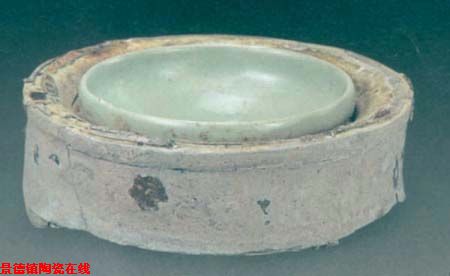 当代陶瓷考古工作者通过对景德镇湖田五代窑址的考察,发现堆积层中没有匣钵,仅见高约10厘米的“垫柱”。垫柱上端的台面留有“支钉”,下端 粘有窑底上的沙粒。碗、盘类产品的底心与圈足的边沿几乎都粘有用耐火粘土搓捏而成、未被烧结的9一16颗不等的“支钉”。专家们对这些遗物进行分析后,认为五代时碗类、盘类产品的装烧过程大致为:以夹沙粘土作成的垫柱为底座——用耐火粘土搓成小条捏成支钉——沿碗坯圈足边沿粘9一16颗支钉——把碗坯放置在垫拄上——再把圈足边沿粘有同样支钉的碗坯一个一个地重叠起来,组成一柱后入窑焙烧。采用这种支钉叠烧法,有这样一些缺点:(一)由于没有把火焰与制品隔离开来,釉面易被烧窑时产生的尘渣污染,以致废品很多;(二)支钉破坏了碗心的釉面,严重地影响了成品的外观质量;(三)因堆叠过多,致使下面的足边下陷而出现缺口。此外,就遗址上粘结成组的碗、盘来看,一般一组只有十二、三个,其高度连垫柱在内也不到60厘米,可见其时堆叠数量不多,窑室内竖向空间的利用率不高,燃料浪费比较大。