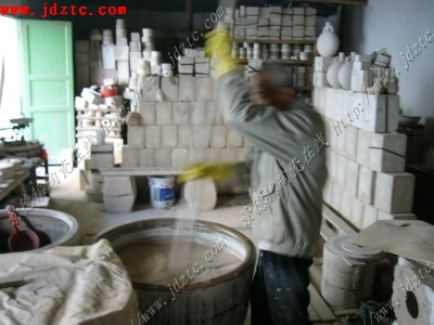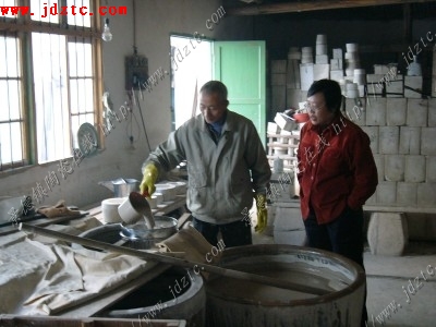 注浆成形是主要的生产过程,注浆成形一般由以下几个连续的工艺过程组成: (1)模型的检查处理与组装: (2)注浆、吃浆、放浆、巩固: (3)脱模: (4)一次修坯; (5)粘结: (6)干燥; (7)二次修坯; 然后准备进行施釉