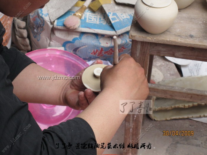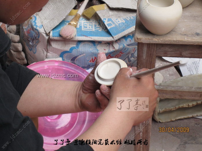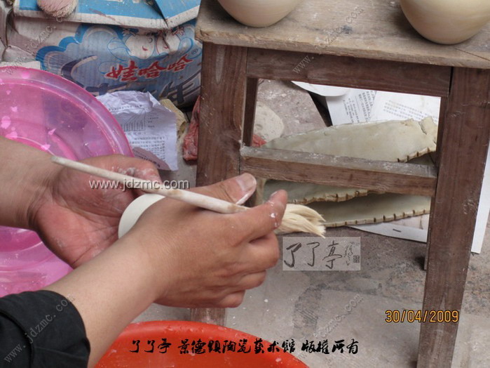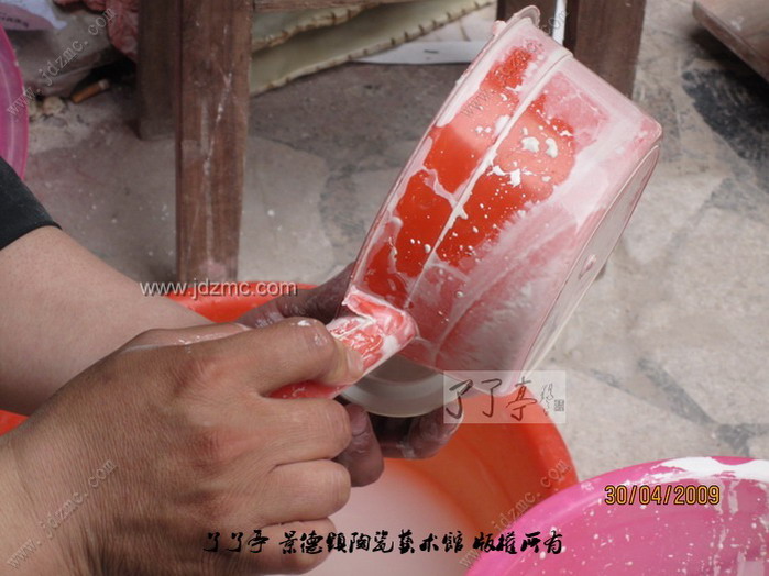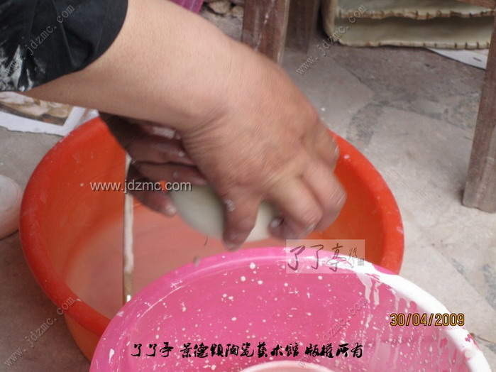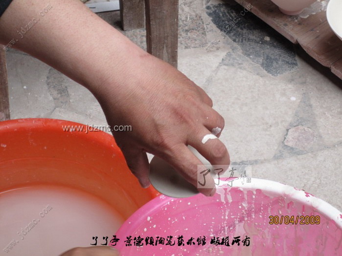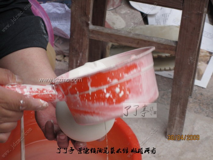 荡釉是景德镇陶瓷传统的施釉方法之一,操作时把釉浆倒入器坯内部,然后晃荡,使上下左右均匀上釉,多余的釉浆倒出即成,这种方法适合于瓶、壶等琢器。 陶瓷施釉技法之一。方法用勺舀釉注于器内,把坯器稍振荡,务使釉浆满布坯体,后倾出多余釉浆,这时将坯体继续回转,使器口不留残釉。适用于器型较深的制品。