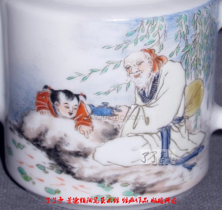 了了亭 景德镇陶瓷艺术馆 资讯:瓷上工笔人物画,用笔工整,刻画细致,色彩典雅,具有很强的装饰意味,是传统陶瓷绘画的重要组成部分。瓷上工笔人物画从线的组织、色彩的运用、墨色的分布、细节的描绘、构图的变化,都贯穿着装饰趣味。这种装饰性是将现实生活中的物象,按其本质特征和客观规律,用形式美的手段给予加强、减弱、集中、取舍、夸张、变形,进行艺术再创造得来的。它强调自然形态更单纯、明快和具有韵律感,使画面具有艺术性,从而成为瓷上工笔人物画的重要装饰性特点。