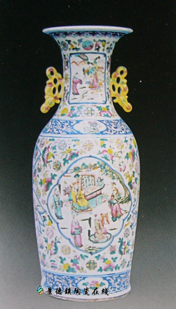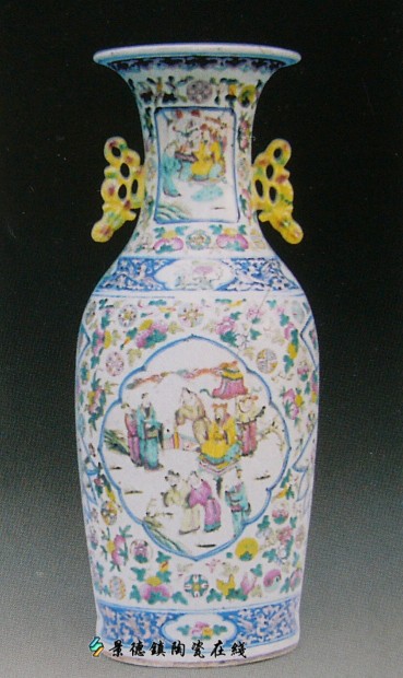 | 同治·粉彩开光花卉人物瓶 | |||||