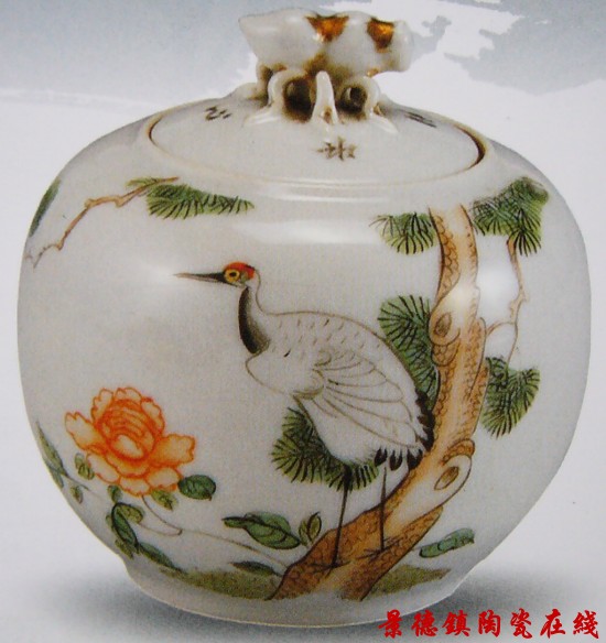 | 杨香山 彩绘松鹤盖罐 民国时期 | |||||