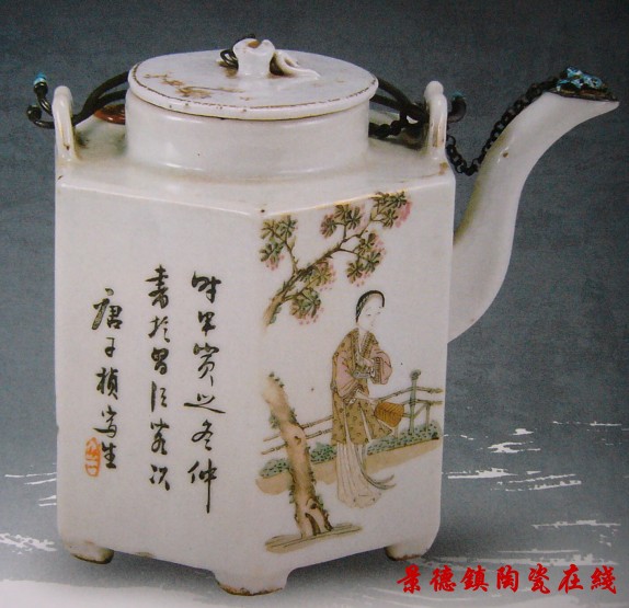 ![]() ![]() ![]() 唐子桢 粉彩人物六面提壶 民国时期 |