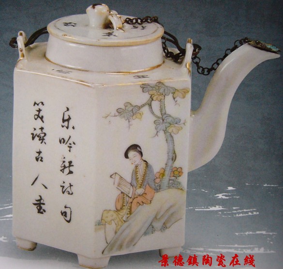 | 洪景皓 粉彩仕女六面提壶 民国时期 | |||||