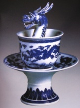 相传朱元璋打败陈友谅定都南京,建立了大明王朝,有一天特宴请他的开国功臣们。席间,朱元璋拿出只瓷质酒杯对大家说:"卿等与朕南征北战,纵横沙场。功绩大小,尔等自知。朕今日亲自斟酒赐饮,尔等可视自己功劳多寡定斟酒长短。"说完,令徐达第一个上前领赏。徐达一来好贪杯,一来日恃功高,竟让朱元璋把杯中酒斟得满溢,谁知他刚端起酒杯,这酒竞泄漏光了。而其他人喝这杯中酒,只要不斟满酒尽得甘醇。众人百思不得其解。朱元璋笑说:"此乃景德镇御器厂奉朕之命所造的九龙公道杯。圣人曰:谦受益,满招损。众爱卿今日一试其公道,以为如何?! 九龙公道杯又叫平心杯,分杯体和杯座两部分,通体高约20厘米。在白腻的瓷面上,有青花鈷料工笔描绘的人条姿态各片的五爪龙,连同杯中的一条雕刻的龙,共有九条五爪龙,寓示皇帝"九五之尊"的威严。更神秘的是,杯中央的瓷龙颈部有一黑色的园点,当酒水低于圆点时,一切正常,当水面超过黑点时,杯中酒水很快就流 出杯外。这是因为瓷龙一侧与杯底衔接处有一约3毫米见方的小孔,在杯外底中心也有一直径约3毫米的小 孔,当往杯中注水超过黑点时,水便从杯内底小孔进去,又顺着外底的小孔流了出去,这其实就是虹吸现象的作用。究其原因是,液体从较高处通过一条拱起弯管,先向上再向下流到较低之处,其因为弯管要呈倒U字形且一端较长,使用时管内必须先充满液体。公道杯里外的两孔之间曲弯管相迮,外部一端较内端长,而瓷龙所标黑色圆点的位置即弯管最上端的部分。当杯中水低于或平齐于黑点时,水不能漫过弯管而泄流,:当水超过黑点时,水面高出弯管产生压力,于是通过虹吸而使水顺右弯管流到杯外直至流净。是一件集工艺性、知识性、趣味性和审美性于一器、欣赏与收藏并重的特色瓷。 九龙公道杯明代永乐年间景德镇御器厂均有出品,现景德镇仍有生产。福建德化窑制品较为多见,但其杯内瓷雕造型一般以寿星人物为主。 |
