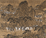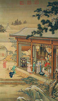 宋代这种出题考试选拔宫廷画家,在以後亦有相类的做法。只是画史上没有详细系统的记载而已。比如清代宫廷中吸收画家,也要经过考试,如果合格,才能成为正式的宫廷画家。这些做法在清代内务府造办处的档案内,可以见到。 如乾隆时的一位颇有名气的肖像画家徐璋(公元一六九四-?年),就曾进到宫里参加过类似的考试。笔者曾经在清内务府造办处的档案中,查到如下几条有关的资料:"乾隆十四年五月二十六日,司库白世秀达子将奴才图拉跪进画喜容徐璋,系松江府娄县之民,年五十六岁。缮写摺片一件持进,交太监胡世杰转奏。奉旨:着伊画一张,钦此。"同年同月的第二天,另一则档案对此事又有记述:"於本月二十七日,司库白世秀达子来说,太监胡世杰传旨:要徐璋试手画呈览,钦此。"这则档案说明乾隆皇帝对此事的答复。当天的又一则档案记载说:"於本日,随将徐璋未画完水墨山水小绢画一张,持进交太监胡世杰呈览。奉旨:徐璋着交春雨舒和行走,钦此。"虽然徐璋後来由於其他的原因,很快就离开了宫廷,但是以上档案资料证明,在清代宫廷吸收、选拔画家时,与前代相似,也同样需要有考试这一步骤。 当然,清代在选拔宫廷画家时,又有它自己的特点。民间画家如果想要进入宫廷,先需有权势者推荐,此为第一步,然後才能有机会去参加考试。就如上面所举出的徐璋,也是先由图拉推荐到北京的。当时图拉是清廷内务府的官员,任职苏州织造府织造,既负责为皇室制造各类用品,也负责向宫廷推荐画家。 另外在朝官员和地方官员都有向朝廷推荐画家的责任,这样的例子也很多见。乾隆时宫廷画家余省、余 兄弟,在进宫供职之前,曾经寓居於户部尚书兼内务府大臣海望家作画二十馀年,又曾向大学士蒋廷锡学画。他们兄弟俩能够入宫供职,定与海望的鼎力推荐有关。又如画家王岑,在京师时与大臣张照、董邦达、张若霭等均有交往,最後他由刑部侍郎励宗万推荐,进入宫廷作画;画家袁瑛,擅长画山水,於乾隆三十年(公元一七六五年)由户部侍郎李因培推荐入宫,供奉内廷二十馀年;陈士俊是一位肖像画家,在京师时与刑部尚书张照、礼部尚书张若霭颇有交往,後来经张若霭推荐,进入宫廷作画多年。根据以上所举事例,可知这些画家经有权势者推荐後,仍然还需通过考试,才能正式成为一名宫廷画家。 除去要有朝臣等的有力推荐之外,还有个别的画家则是通过"献画自荐"的途径而进入宫廷的。当然首先这些画家要具有相当的实力,另外也需要有适当的时机。金廷标和徐扬这两位画家便是很典型的例子。徐扬是一位手段全面的画家,擅长画山水、花鸟、草虫、界画,乾隆十二年(公元一七五一年),乾隆皇帝即位後首次南巡,抵达苏州时,徐扬恭进画册,得到赞赏,不久来到北京宫廷供职;金廷标(公元?-一七六七年),同样是一位画法全面的画家,乾隆二十二年(公元一七五七年)乾隆皇帝在位後第二次南巡时,金廷标主动进献《白描罗汉图》册,得到皇帝的嘉许,随之北上进入宫廷供职;还有另一画家严钰,於乾隆三十年(公元一七六五年)皇帝南巡时进献山水册页二十开,并附自作"江南好"词於後,深得皇帝的欣赏,谕严钰供奉内廷。 清代宫廷画家中还有相当一部份是属於父子相承、师徒相继的。这其中的原因也很好理解,既然父亲、祖父或师傅长期在宫廷内供职,依靠这一层关系,他们的弟子进入宫廷供职自然是比较容易的事情,这样的例子也有不少。画家焦秉贞和冷枚是师徒,他们先後於康熙年间进入宫廷服务;又如画家张震,於康熙、雍正时在宫廷中供职,张震之子张为邦便於雍正时进入宫廷成为供奉画家。张为邦在宫中作画延续至乾隆时,等到他年老时,又推荐他的儿子张廷彦来顶替作画。如此祖孙三代先後在宫中供职的绘画世家并非个别的例子。又如孙阜,是康熙时的宫廷画家,其子孙威凤就在雍正时进入宫廷供职;画家王介 於康熙、雍正时供职於宫廷,他的一个儿子王幼学便在乾隆十六年(公元一七五一年)先期进入宫廷供职,随後他的另一个儿子王儒学也入宫供职。 由此看来,清代宫廷画家的推荐与选拔和宋代相比,考试只是其中的一道关,其他人情的因素是很大的,故而清代宫廷绘画的水平也是无法与宋代画院作品相比的。宋代院画能够起到左右画坛的主流作用,而清代宫廷绘画只能是整个画坛的一分子或一个流派而已。