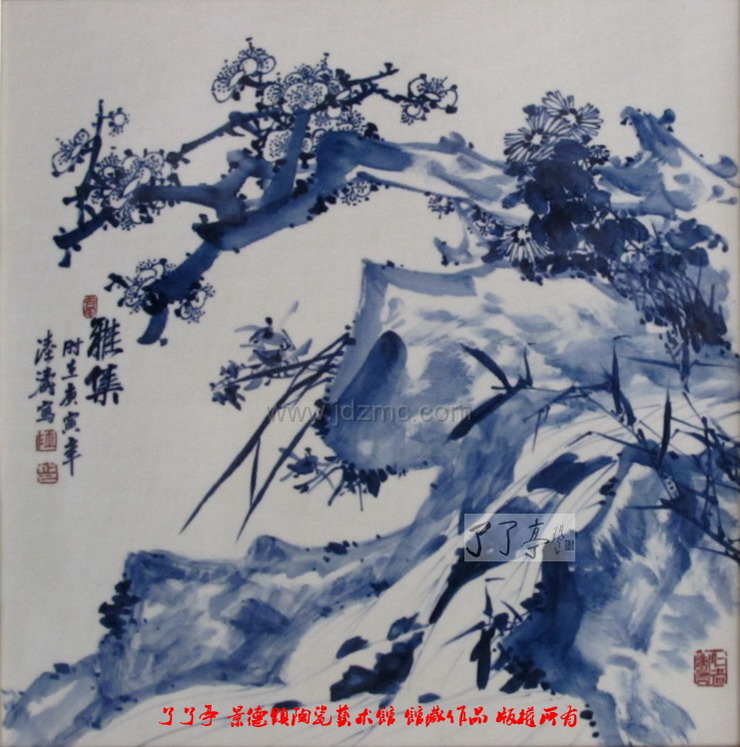 | 80x30cm春夏秋冬花.斗彩 君子雅集-梅兰竹菊 青花《荷塘幽趣》作者:陆涛 青花“神龙得水”作者:陆涛 |