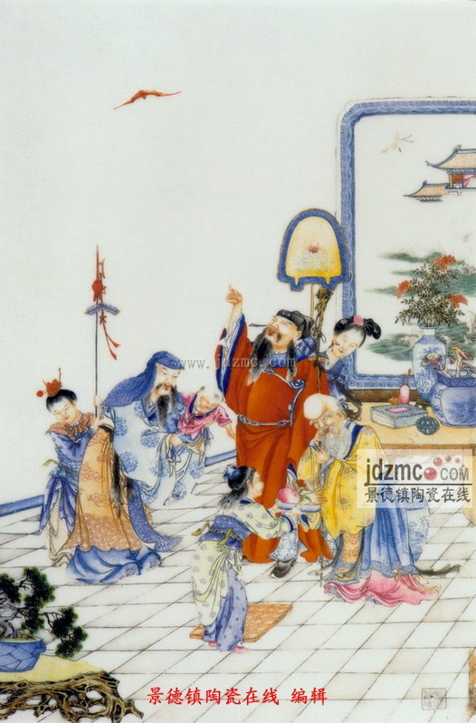 没有人会定论,工笔画的领袖必定是屈尊在写意派主子的麾下,就以珠山八友中的另一位画家徐仲南而言,他擅长山水画,深得黄鹤山樵之胎息。但最终他的山水之名为松竹所掩。何也?因为山水的位子被别人(汪野亭)所占。可以说,八友中的每位画家都有意保留自己的独特风格面世。如果要八友合画八块成堂的瓷板,同时就有两块人物画面的作品,其中有工笔的绢秀津美,游龙戏风的矜奇炫异之佳作;又有写意的潇洒不羁,豪放挥写又妙到毫巅之画卷。岂不是品味丰富,更加耐人寻味了吗?
