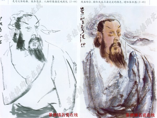 着色为了表现人物的历史感,人物形像塑造接近戏剧化。轮廓线线条简洁、轻松;线面结合,脸和衣纹点染淡淡的颜色,增加点体积感;范仲淹那清癯、严肃、凝神远眺的神情,以及夸张形象,口的是表现凛然正气和文采飘逸的高贵气质。