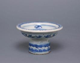 隋朝时期的盘多为高足、足上窄下阔、呈喇叭状、盘口斜直、施直青釉、开碎细纹片、玻璃质较强,亦有平底和圈足的,有明显的垫支烧痕,一般无纹饰,较高档的盘常以朵花卷叶纹组成的圆形图案装饰盘中心。
