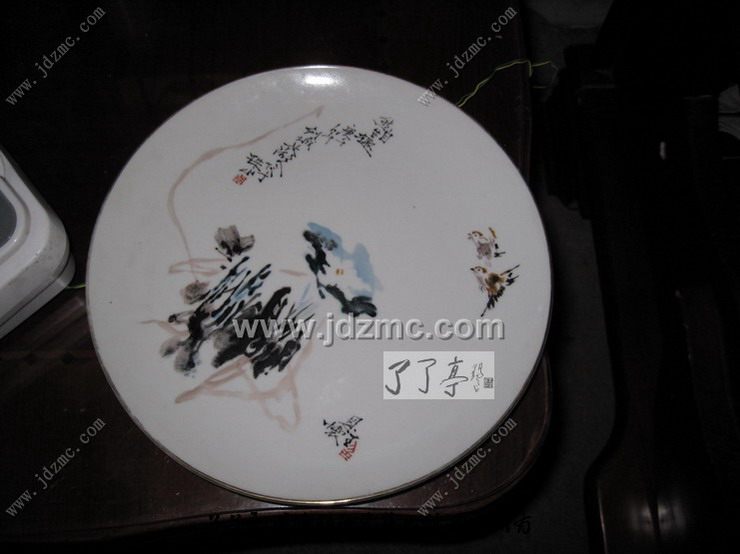 今天上午陈齐招来店里面聊天,正聊的开心的时候,进来了一个学生模样的人,手里拎着一个朔料袋,进门就问我收不收东西。我笑笑,收啊,进来吧。这个年轻人打开朔料袋,一共是两个盘子,上面一个是王恩怀的,下面一个画的很差,我没有仔细看。上面这个王恩怀的盘子画的很不错,而且题字题的很到位,具体的您可以看看下面的图片。