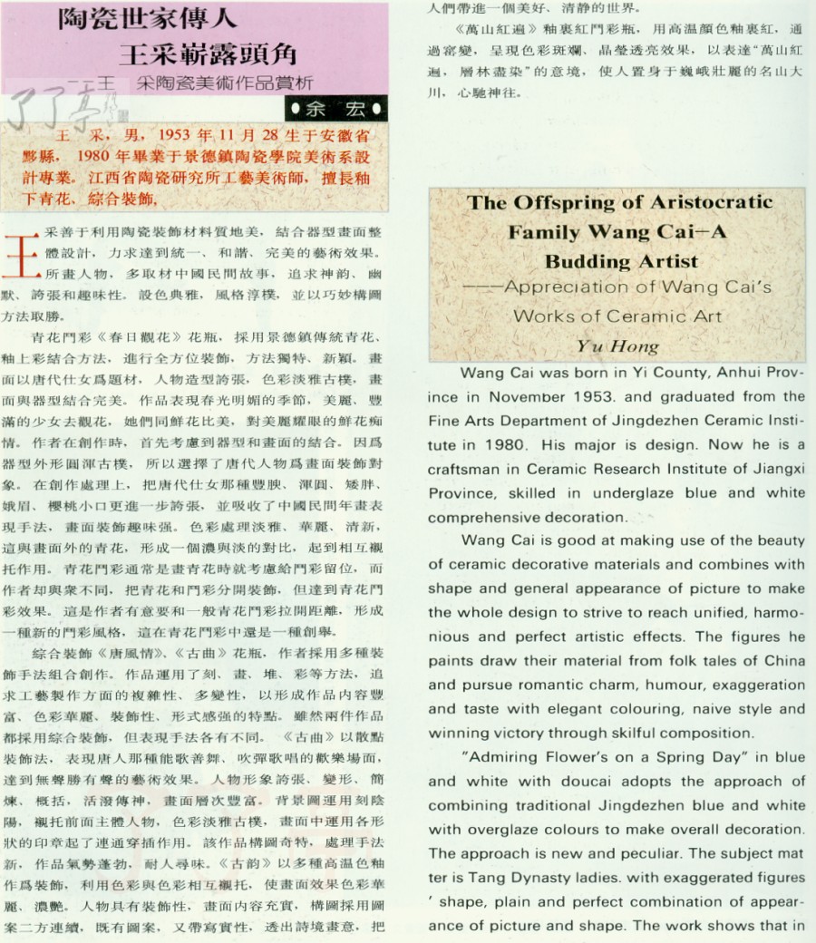 | 陶瓷世家传人-王采崭露头角 95年资料 | |||||