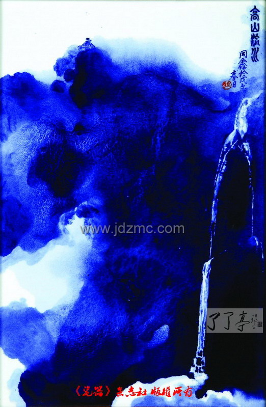 感觉成就境界 无论是《长城魂》,还是《高山流水》或是《喜相逢》,孙同鑫的泼墨作品都力求创作激情,并倾注于瓷板之上,以表达深远的意境。 青花泼墨是孙同鑫的自创,在上世纪80年代决定研究青花泼墨之前,他甚至没有看过国画的泼墨技法。20多个寒暑之后,孙同鑫的青花泼墨已成瓷坛一绝。 但孙同鑫却觉得泼墨技法本身并不值得夸耀,单纯在技巧上也并没有太多意义,相反他认为无论是传统的技法还是他的青花泼墨都只是手段,更重要的是作品表达出的思想境界和内涵。 只不过青花泼墨技法更适于表现奔放的风格,不像传统技法那么局限。泼墨看似随意,好的效果也看似偶然得之,但从事青花泼墨20余年的孙同鑫却不这么认为。青花泼墨需要足够的经验,进行泼墨之时瓷板上都是黑乎乎的料色,根本看不出颜色的深浅和效果,没有胸有成竹的把握,那就只能寄希望于小概率的侥幸发生。 相比载体为宣纸的国画泼墨,青花泼墨的难度更大。青花泼墨的载体是泥坯,材质疏松,吸水性强,泼青花料上去瞬间即干。因此泼墨时需要在极短的时间内作出正确的判断,控制颜色深浅等创作过程,这就需要足够的经验累积来支撑。在研究青花泼墨的过程中,孙同鑫不断试验和熟悉原材料的性能,并使它为自己所用,为自己的艺术思想服务,以青花泼墨来表达其独特的艺术风格。 要做到思想和技巧统一,并在泼墨之前详细构思直到胸有成竹才能动手泼墨,孙同鑫正是如此才将泼墨效果的偶然化为必然,也正是如此,才能直抒胸臆。 走自己的路 孙同鑫出生于陶瓷世家,自小便耳濡目染了传统制瓷技艺和陶瓷艺术。在孙同鑫的艺术成长道路上,也得到过许多良师指导。 青花大王王步就是其中一位。孙家和王家算得上是世交,王步很喜欢孙家的这个小孩,时常会叫孙同鑫去他那里,“同鑫,我画了几块盘子,你过来看看。”孙同鑫最喜欢王步画的猫,王步画猫十分传神,就连猫腹部的绒毛都和真的一样。 此外,孙同鑫对王步谦虚好学的求艺态度也是记忆深刻。王步有次到北京开会,回来便兴奋地和孙同鑫说起北京的见闻。 “这一回,我碰到了一个大画家。”王步笑呵呵地对孙同鑫说道。 “什么大画家。”孙同鑫纳闷了,心想你自己不就是大画家。 “我碰到徐悲鸿了。”王步对自己的际遇很是得意。 虽然当时年纪很小,但徐悲鸿的名号孙同鑫还是听过的,便问:“有他的画吗?” 王步哈哈一笑,“我带了他的画片来。”(当时很少有大幅的艺术复制品,画作也多印刷在很小的画片上。) 于是,一老一小便专注地观摩起徐悲鸿画的马来。 孙同鑫11岁开始学徒,学艺期间得到多位大师指点,后又师从王锡良大师。虽然孙同鑫的从艺道路上有这么多名师指导,但孙同鑫却没有生硬地走老师们相同的路,“和老师们学,更重要的是学习他们的创作思想和对待艺术的执着精神。” 孙同鑫十分敬佩王锡良大师,因为王锡良的作品有自己的思想,在技法上也突破了传统技法的限制,走出了自己的一条艺术之路。 因此,孙同鑫决定走出自己的一条路,哪怕一条路走到黑也在所不惜。在孙同鑫的早期作品中,我们就能发现孙同鑫与他人的不同之处。 孙同鑫早期曾创作了一块名叫《涉江》的釉下五彩瓷板画,为体现作品意境的岁月沧桑,孙同鑫借鉴汉砖的纹样,大胆起用赭色作为背景装饰,令人叫绝。画面中屈原凌波而歌,赭色的江水将画面气氛烘托得十分悲壮。在一次展览上,一位湖南人看到这幅作品,不禁惊叹,“为什么我们湖南就没有人想到这样做?”当时湖南最擅长的就是釉下五彩。 孙同鑫独特的构思常常给人留下深刻的印象。上世纪80年代末,孙同鑫创作了一幅《黛玉葬花》的写意作品。《黛玉葬花》是许多艺术家们都乐于表现的题材,正因如此,要做到不落俗套,又要表现好黛玉“花落人亡两不知”的凄凉心态,就十分有难度。 孙同鑫构思时,没有表现黛玉荷锄或是筑花茔的场景,而是标新立异地表现了黛玉款款俯拾落英的神情,让人看了又悲又怜。当时秦锡麟教授看到画作后,对孙同鑫的构思巧妙大为赞赏。 在创作技法上,孙同鑫花费20多年的时间苦心钻研泼墨技法。这是一个未知的领域,但孙同鑫义无反顾地为之倾注了半生精力。孙同鑫不喜欢过分强调传统笔墨,因为这会限制他作品所要表现的内涵,而泼墨技法则更为奔放,让他找到了更加适合自己的表现手法。 孙同鑫说,没有任何一项技法是完美的,他也将继续钻研青花泼墨工艺,让这项技法更为完善和成熟。 传统的事物,毫无疑问都美好而经典,孙同鑫执着于创新,但从来不否定传统,他希望他的青花泼墨有一天也能成为传统,被后人不断创新。而他自己,正在创造着经典。