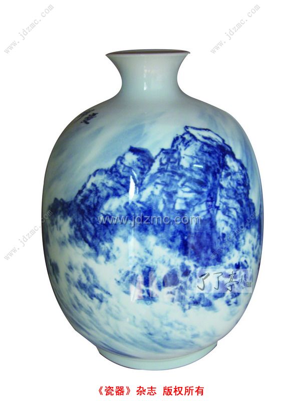 刘玉凤:瓷器本身就是一件美的工艺品,如何让它美中更美,关键是加上去的装饰是否突出了瓷器本身的美。实际上,像我创作的青花山水,主要的目的也是为了突出瓷器本身的美。所以,我认为陶瓷虽然是工艺品,除了需要掌握一定的绘画技巧外,还必须掌握相应的工艺技巧,才能将瓷器的美完整地表达出来,这对创作者是一个考验。