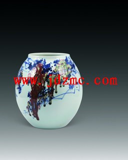 | 说明 | 吴天麟 青花釉里红“清韵”瓶 高31厘米 作品赏析 兹青花釉里红“清韵”瓶,色泽浓郁深杳,多见铜绿斑纹,是为色当其意,更能现自然之天趣。细观其运笔,兴会淋漓,墨气滃然,不囿陈法,不拘物形,是觉气象超迈、心神畅快。吴天麟掷笔俱随心施技,师法造化,拈来成趣,然不拘乎形之具貌,以形写神,形神互照,妙在似与非似之间,笔势翩跹灵动,然绝无妄下,形简意足,意态鲜活,尤臻得笔墨之至味。 Wu Tianlin A copper red and underglaze blue ‘Bird and Flower’ vase H.31.cm Appreciation: Particularly fine use of glazes here. The combinations are structured to conform to traditional Chinese ideas about representing birds and flowers in art. RMB: 30,000-40,000 作者简介 吴天麟(B.1962),江西景德镇人。现为江西陶瓷工艺美术职业技术学院副教授、景德镇青年美术家协会副主席、高级工艺美术师、中国工业设计协会会员。擅长釉上粉彩及新彩装饰。 |