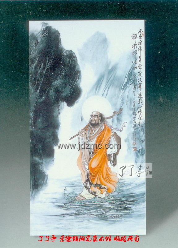 春夜宴桃李同·粉彩瓷板一苇波江·粉彩瓷板