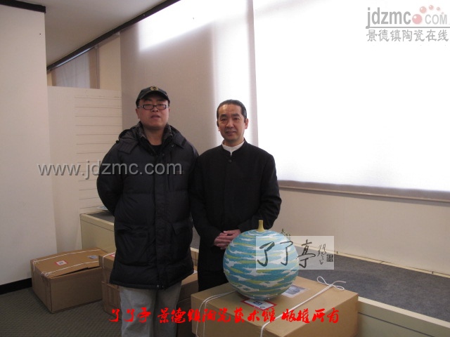 了了亭·李申盛与中村元风老师合影。旁边的这个作品17万元人民币