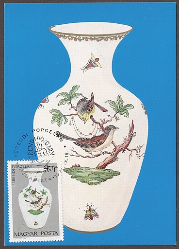 匈牙利 1839年海伦迪尔瓷器花鸟图案花瓶(1972、9、15首日戳)
