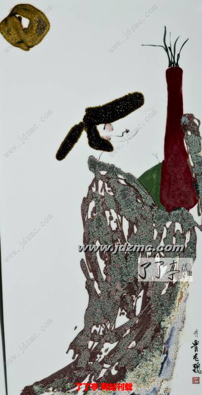 在魏忠峰初试颜色釉创作早期,花鸟题材成为这一时期的主流,代表作如《相依》。从中不难看出作者扎实的国画艺术功力,以及对颜色釉独具禀赋的感悟。简练朴实的构图、粗中有细的布局、个性鲜明的主题、想象丰富的色釉运用都给人留下深刻印象。正如大多数中国山水画家一样,作者寄情于物、借物抒情的创作意图十分清晰。从中我们分明可以体悟到作品所追求的、极富浪漫的人文风尚。而随着在花鸟题材上初试锋芒之后,魏忠峰直接把他颜色釉的笔端对准了更瑰丽的艺术目标——人物创作。
