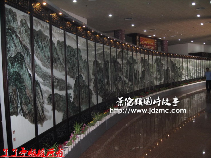 昨天去了南昌,考察42米巨幅通景式屏风瓷板画—《西江揽胜图》的吉尼斯项目申报,今天回景后发些局部图片给大家看看。因制作方要求,防止仿制现象,不能全部发出。