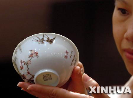 相关资料: 2006年11月,著名收藏家张宗宪先生收藏的清乾隆御制珐琅彩杏林春燕图碗,在香港由佳士德拍卖公司拍卖,约以1.51亿港元成交。此碗珐琅彩绘杏林春燕图,弱柳扶风,杏花盛开,双燕飞翔其间,一侧行楷御题诗:“玉剪穿花过,霓裳带月归”。造型秀美,白釉温润,底为双方框“乾隆年制”蓝料款,工艺精湛,为乾隆珐琅彩杰作。1985年5月此碗曾在香港苏富比上拍,成交价为110万港币,短短二十年的时间,价格就翻了130多倍。