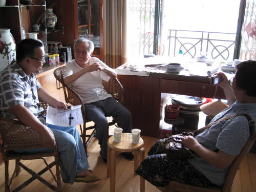 不知觉间都聊了两个小时,为不耽误他们吃饭,我们约好电视采访的具体时间,赶紧起身告辞,老人家坚持送我们,把我们送到大铁门外,他还扶着门目送我们走远,脸上依旧挂着那孩童般的笑靥,真是可敬可爱,我从心底希望,并祝福老人家活到一百二十岁,永远健康快乐!