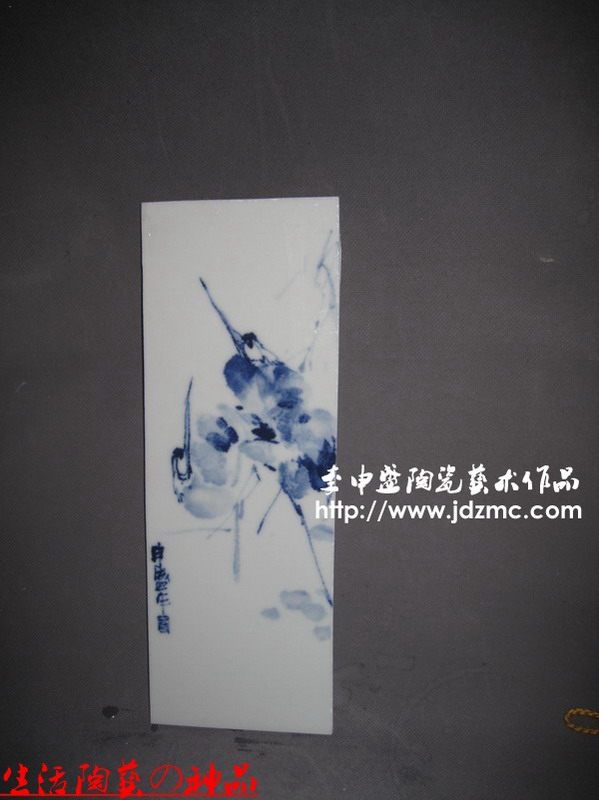 绘画作品一直都是我考虑涉及的一个方面,我个人绘画水平不高,以前多位大师愿意好好给我授课,我像逃学一样,找着理由不去听课.那个时候有两位老师还愿意亲自上门给我做指导,我那不爱学习的毛病使我今天懊悔不已。现在多是在一些小老师指导下完成的。之所以叫做小老师,只是他们年龄都比我小,但是画艺都比我高。从颜色釉入手,陶艺之路我也不想做停歇了,青花和青花釉里红文人画,将陆续推出。这8块作品是从一个大瓷板上切割下来的,是一位武汉的朋友点名制作的,为的是装饰客厅,贴在瓷砖上。瓷板不用镶木框,条形构图,本定是六块,看见瓷板上还有位置,于是补送了两块。(了了亭·李申盛/文)