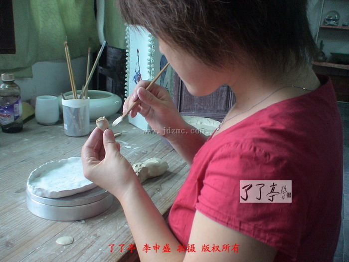 主讲人:王章清 高级工艺美术师,1972年出生于景德镇,毕业于江西省轻工业学院,在刘远长的工作室从事陶瓷创作工作。多年来,蒙承刘远长大师的悉心指点,使她的瓷雕作品无论是在工艺性上还是艺术性上都有了长足的进步。 近年来,有: “田园风情”、 “梦想成真”、“凌方”捏雕花盘及花饰系列均受到广泛赞誉。199了年11月,她参加了上海首届现代陶艺博览会的陶瓷文化交流,2001年11月应邀在上海全国商品交易会上进行景德镇陶瓷提雕的现场表演。2002年元月与陶院教授联合创作大型瓷雕壁画“百鸟朝凤”。
