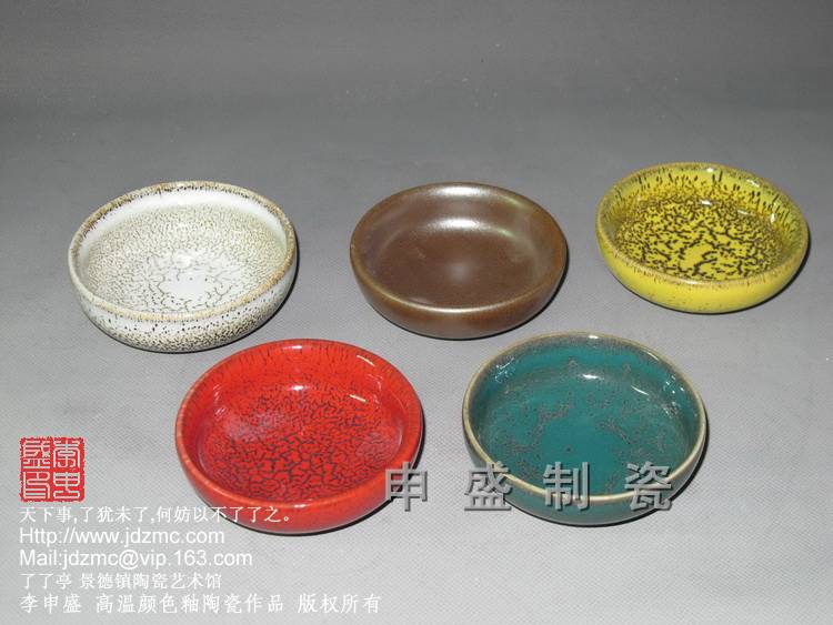颜色釉之美是与天地同寿,万物齐辉,过往千年,你在或不在江湖,我都在这里的。五色盏是在徐国明老师五行壶之前由我设计完成的,五行壶应该说是在五色盏上更为深层次的一种拔高,徐老师在赏得我五色盏之后,便有了配套之冲动,无论是器型,还是胎质,乃至色彩的甄选,无不立意传统,适宜创新。使得这些美器在怀旧的色彩烘托下,让人想起张曼玉穿着缤纷旗袍,诉说一段红尘过往。 了了亭 李申盛/文