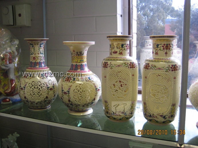 这个大的镂空象牙瓷花瓶造型沿袭明代,雕工细致,毫无瑕疵,尺寸将近45厘米,非常适合我家的博古架。