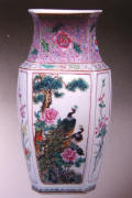 刘文美 1943年出生,江西波阳人。1961年毕业于景德镇艺术彩绘专科学校,现任职景德镇市艺术精品陶瓷有限公司,陶瓷高级美术师。刘文美擅长陶瓷粉彩新彩装饰,主攻陶瓷粉彩花鸟。她的陶瓷艺术源于传统,师法前人,旁采博取,中得心源。从艺四十多年来,努力学习技艺,淡泊名利,修养艺德。其作品既有民族传统特色,又溶入了浓郁的时代气息。画风严谨秀丽,神韵兼备,线条流畅自如,用笔功力深厚。其代表作品《百鸟朝风》《四季花鸟》《国色大香》《四喜临门》尊颇受国内外收藏家和广大陶瓷爱好者的珍爱。