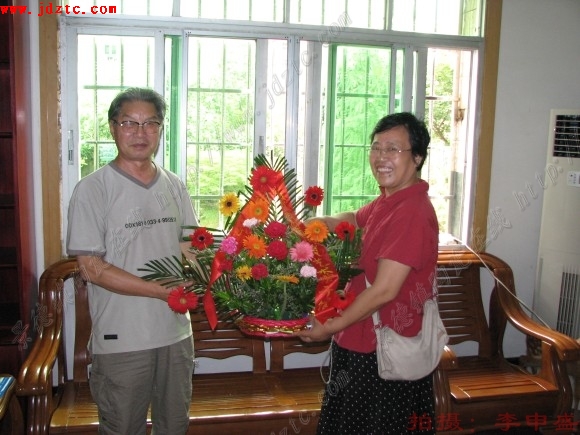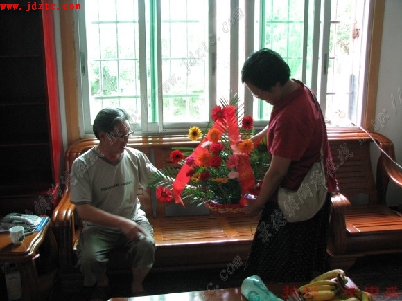 周老的陶瓷馆应该说是这一次市政府授牌第一批中3个大师成立个人博物馆最早的一个,12号也就是明天,是政府揭牌仪式,我和母亲送花篮祝贺周老,他很高兴的放在主厅正面电视机柜上。