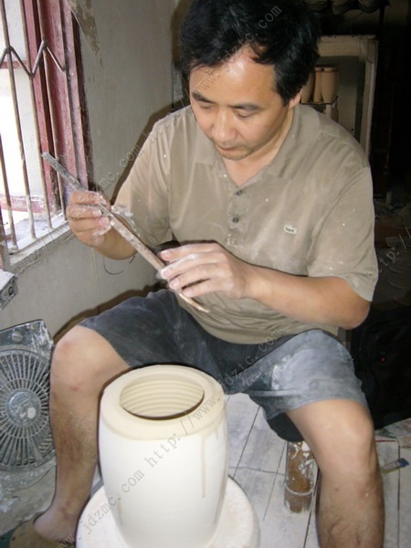 高贵与荣誉的背后--戴荣华,戴玉梅,诸葛伟世家制瓷部分工序图片 景德镇的陶瓷行业,虽然已经有千年的历史,但是制瓷工艺尤其是釉料、胎土等配方,历来是保密的重点,世代家传,决不外泄,因为涉及到大量的机密,通过镜头,您看到的是一个简约制作过程。 诸葛伟教授是一个多才多艺的艺术家,因为戴荣华世家的胎、釉的综合效果好,反过来也导致了制作的成品率很低,经常倒窑。所以许多情况下多由他本人亲自操刀,整个过程均由他一个人全程监管。