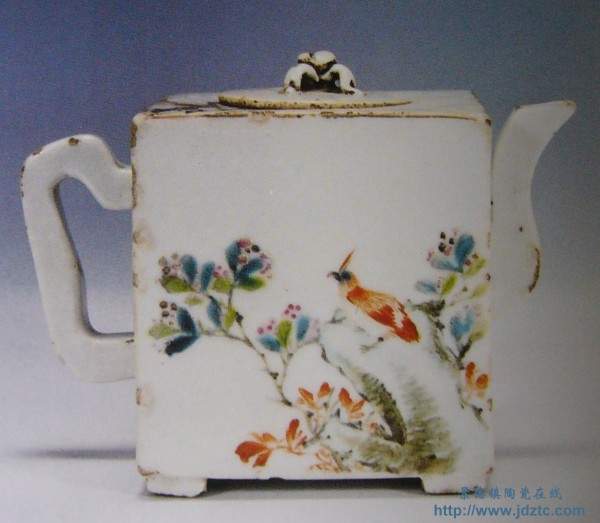 胡中氏《山水花鸟图》浅降彩天元地方壶