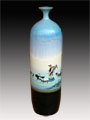 其创作思路开阔,善于发掘陶瓷材质本身的艺术表现力。作品风格清丽俊雅,意境深远,给人留下无穷韵味。