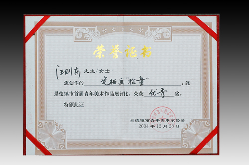 年函授于景德镇陶瓷学院,后深受王锡良老师的细心指导与张景寿师傅的栽培,受益致深,创作了一件件形式新颖的佳作。作品生动、逼真,既有鲜明的民族传统特色,又有浓郁的时代创作新气息,形成了一个独特的艺术风格。