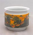 汪雅平,江西景德镇人,高级工艺美术师,毕业于景德镇陶瓷学院。他自幼酷爱美术,擅长釉中彩,画面表现内容丰富多变,构图注重气势与意境,作品多次参加全国各地的美展并获奖,深受美术界人士与收藏家的好评。 景德镇陶瓷举世闻名,陶瓷装饰百花齐放,不断创新,“釉中彩”一枝独秀。 釉中彩一九六二年由江西景德镇轻工业部陶瓷研究所研制成功。代表了20实际制瓷史上的最高水平,作为国家礼品瓷。通过国家领导赠送给外国首脑,被赞之为“稀世之宝”。 釉中彩陶瓷系一总称,其中包括“领袖用瓷”和景德镇为毛泽东研制的“7501”工程瓷器(也称作中南海用瓷)。釉中彩不仅不含镉,无铅毒,而且重量轻,色泽美,胎体细腻坚实,色彩典雅,造型端庄。具有良好的透光性,正是“明如镜,薄似纸,坚如铁,声如馨”,几乎无暇可寻,这种特制瓷需经历1360度高温三次烧制,每次烧制均需将瓷器置于瓷窑中心部分,依仗均匀的火力才能使釉面白里泛青,柔润如水。 “以领袖用瓷”为代表的“文革瓷器”由于存量稀少,货源奇缺,已经成了艺术品市场可居的奇货,成了市场价格飚升最快,涨幅最大的收藏新贵,五年内涨幅已超出两万倍。