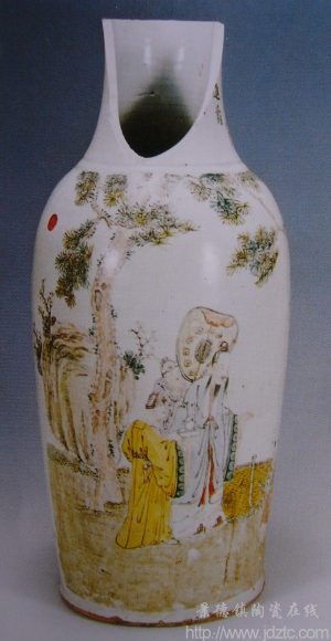俞子明《人物》双耳大瓶 民国时期 白文宏藏 |
