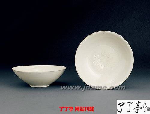 北宋,定窑白瓷刻双鱼纹碗,双鱼纹盘(两件)
