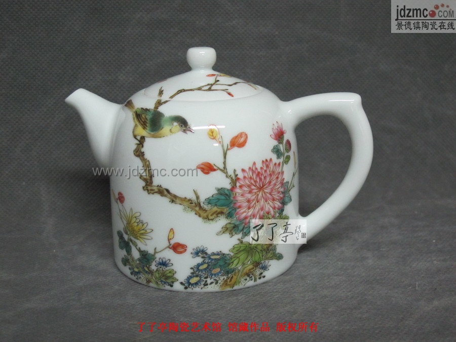 徐国明 工笔粉彩花鸟茶壶《菊花小鸟》