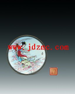 | 说明 | 赵惠民 粉彩“天女散花”盘 直径37厘米 题识:惠民画。 印识:赵、雅玩珍藏 作品赏析 《维摩经?观众生品》曰:“时维摩诘室有一天女,见诸大人闻所说说法,便现其身,即以天华散诸菩萨、大弟子上,华至诸菩萨即皆堕落,至大弟子便著不堕。一切弟子神力去华,不能令去。”“天女散花”乃为佛教经变故事,蕴藉深微,不可殚言。赵惠民嗜作古装仕女,掷笔俱得前人笔趣,画风工致雍雅、姝丽隽美,尤臻诗情画意,是其能师古而不为古所缚,厥能自成一胜。 Zhao Huimin A famille-rose ‘Maiden’ plate D.37cm Appreciation: The maiden’s flowing drapery is echoed in the wispy clouds that encircle her. Her austere expression and classical pose suggest something ephemeral and transient, offset by the strong colour combinations of her robes. RMB: 80,000-120,000 |